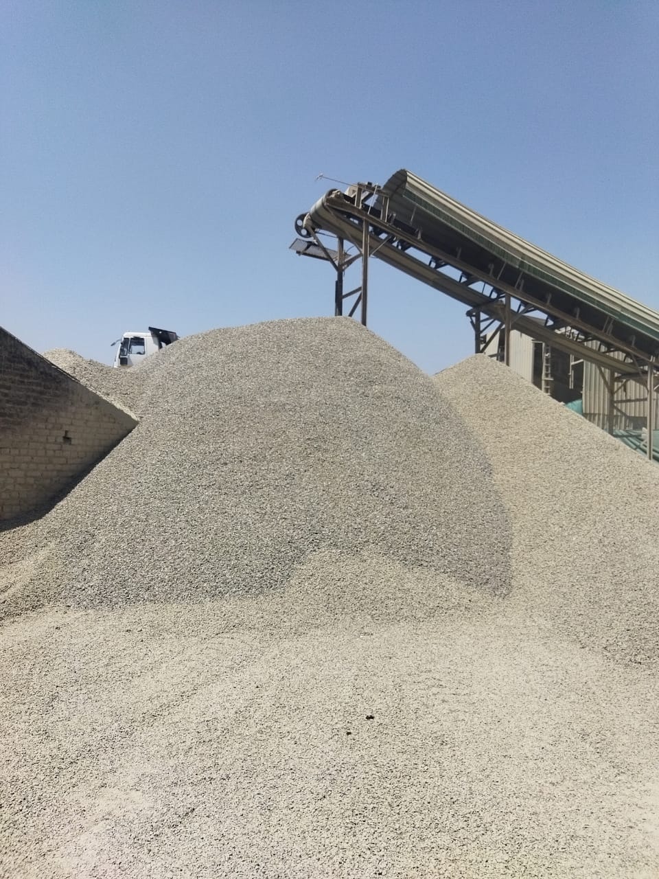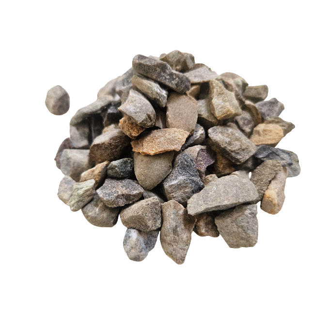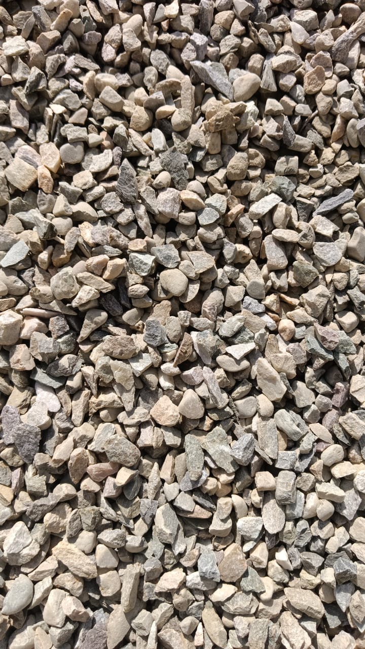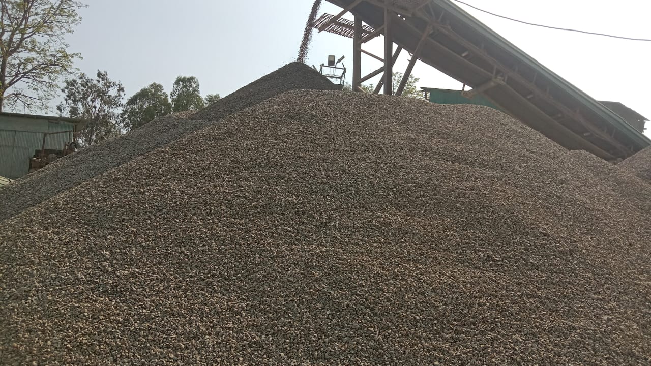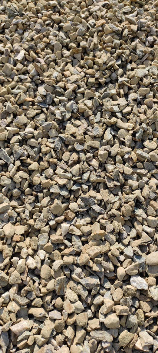 Stones are crushed and screened to get 10 mm pieces.